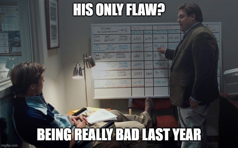 Jeudy's a really interesting test case for this. He'll only be 27 years old this season and has several quality seasons to his credit already. The problem? He's coming off not only his worst season to date, but one of the worst seasons for a receiver with a high target volume that we've seen in some time.