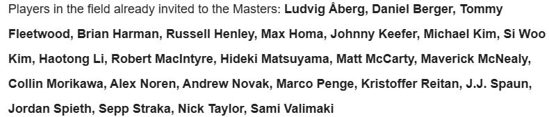 That list is courtesy the PGA Tour. (Note: Daniel Berger and Collin Morikawa withdrew on Tuesday morning)
